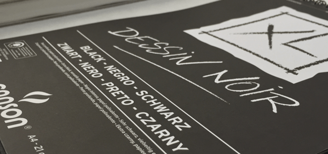 O bloco de papel para desenho XL Dessin Noir Black é um bloco composto por 20 folhas de um papel com 150gm², ideal para criar composições de contraste com cores claras.