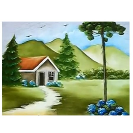 “Neste vídeo você vai pintar uma paisagem no tecido. A técnica poderá ser adaptada na pintura em tela também.”
