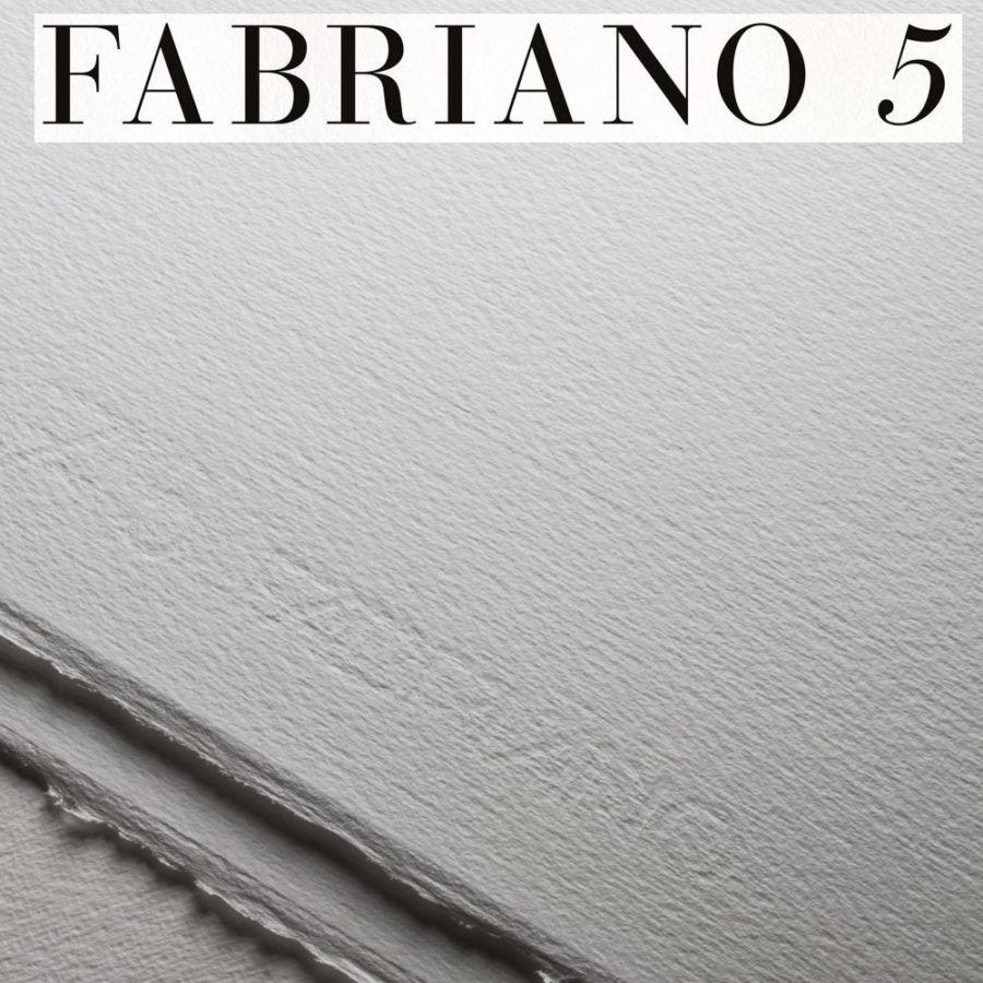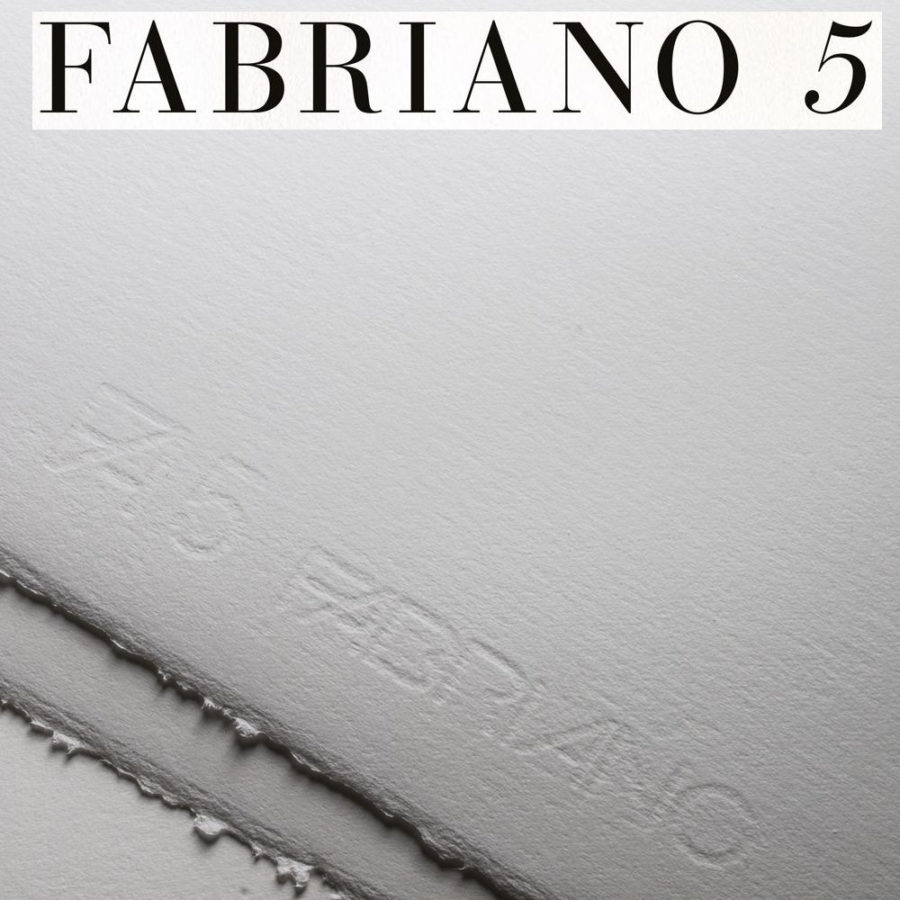 Fabriano 5 possui um sistema de fabricação redondo, sua composição de 50% de algodão fino e matérias-primas cuidadosamente selecionadas transformaram a série Fabriano 5 em um clássico papel de aquarela. O papel Fabriano 5 também é apropriado para outras técnicas, como têmpera, guache, grafite, carvão, giz seco, oleoso, impressão xilo ou gravura, litografia e impressão em jato de tinta de obras ou convites. Com as opções de : Satinado, Grana Grossa, Grana Fina